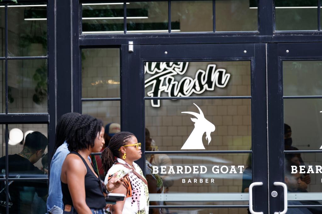 8月5日,在美國首都華盛頓,行人從一家理發店前走過。(新華社發,沈霆攝)