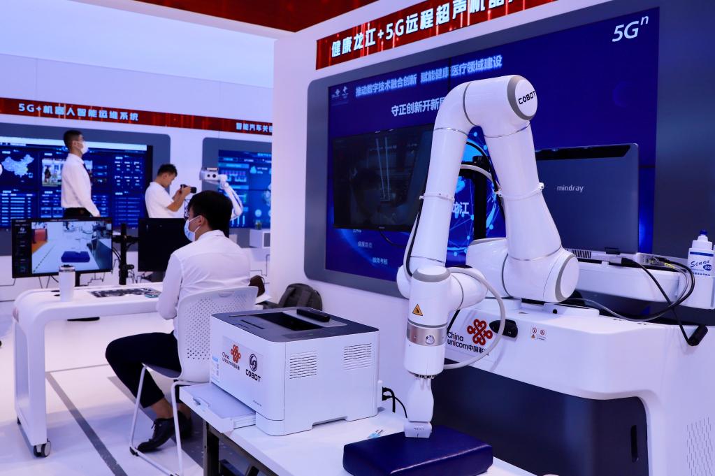 新華社哈爾濱8月11日電(記者徐凱鑫)白色機(jī)械臂依據(jù)指令準(zhǔn)確地完成一系列精準(zhǔn)操作,工作人員通過操作臺(tái)遠(yuǎn)程控制機(jī)械臂進(jìn)行超聲診療……這是2022世界5G大會(huì)現(xiàn)場展出的5G遠(yuǎn)程超聲機(jī)器人。