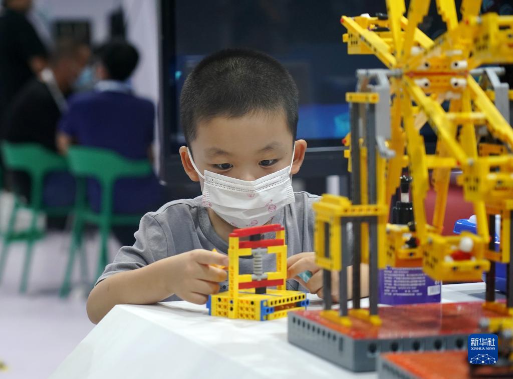 8月18日,一款機(jī)器人教具吸引了小朋友的注意。新華社記者 張晨霖 攝