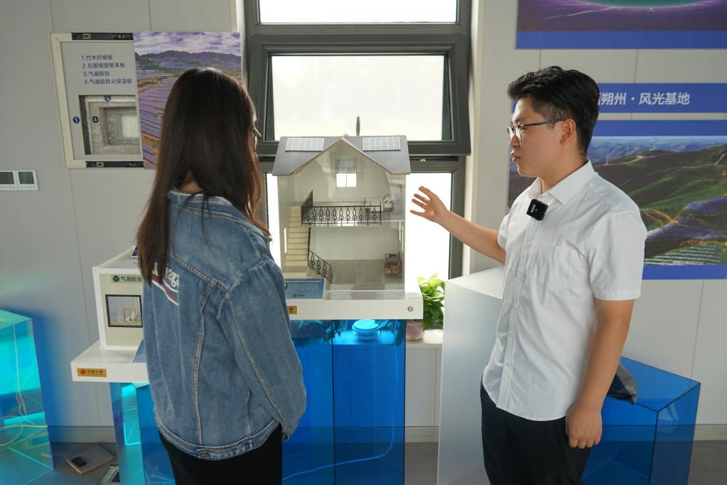 工作人員在向觀眾介紹零能耗會客廳。新華社記者 張磊 攝