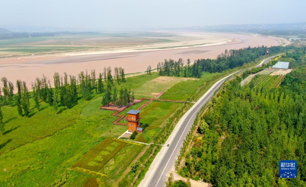 這是2022年8月10日在河南省三門峽市拍攝的黃河生態廊道(無人機照片)。新華社記者 郝源 攝