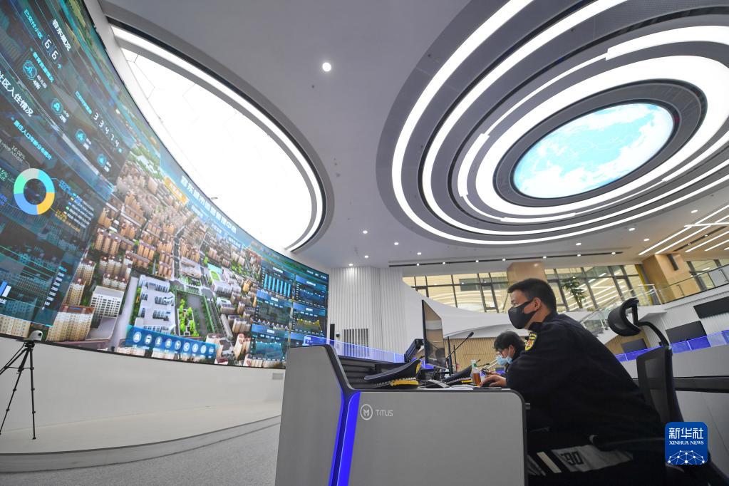2022年3月29日,工作人員在雄安新區容東城市運營管理中心監管平臺工作。新華社記者 朱旭東 攝