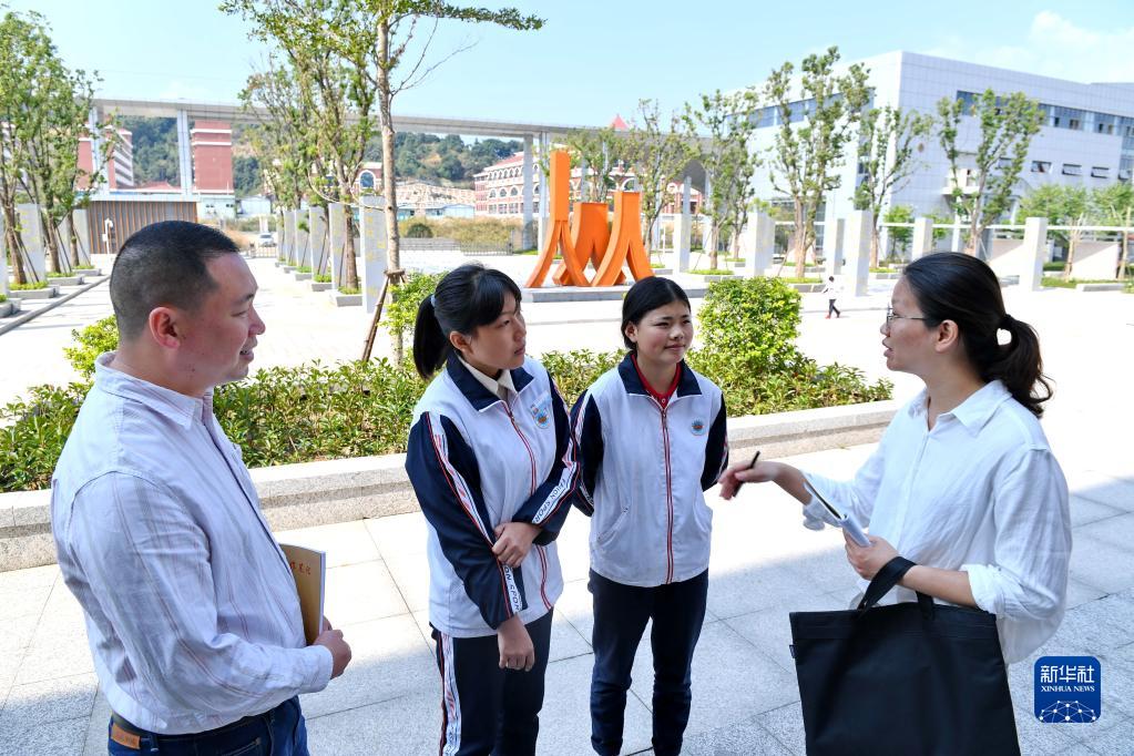 2019年10月24日,福建省福州市閩侯縣委巡察二組工作人員(右一)在閩侯縣職業中專學校了解中職補助資金發放情況。新華社記者 林善傳 攝