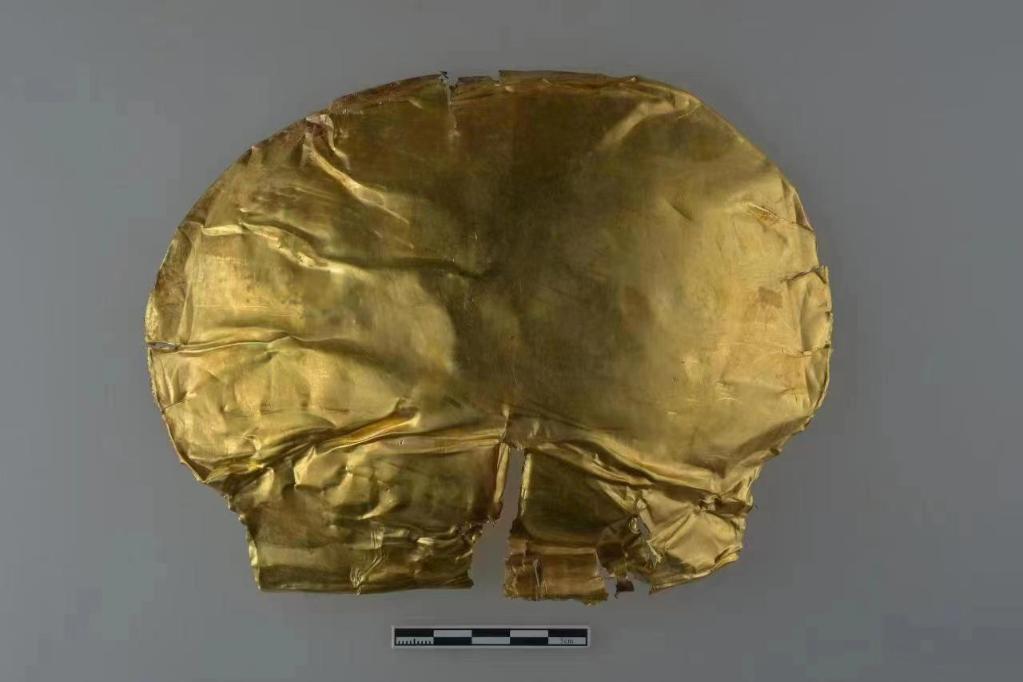 這是鄭州商城遺址高等級貴族墓M2中出土的金覆面。(鄭州市文物考古研究院供圖)