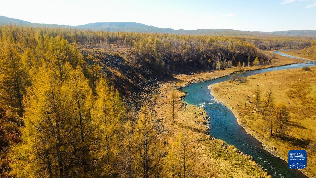 這是9月21日拍攝的阿爾山國家森林公園中不凍河的自然風光(無人機照片)。