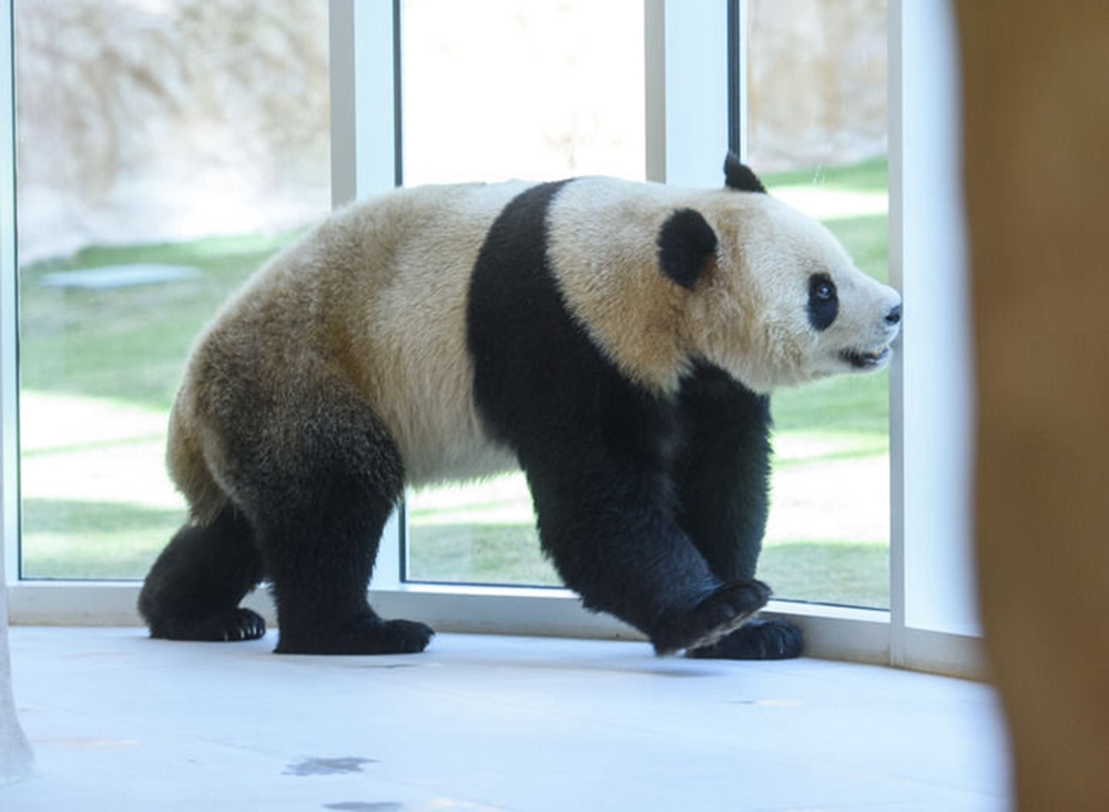 10月19日,大熊貓走在位于卡塔爾首都多哈的豪爾熊貓館內(nèi)。新華社發(fā)(尼庫攝)