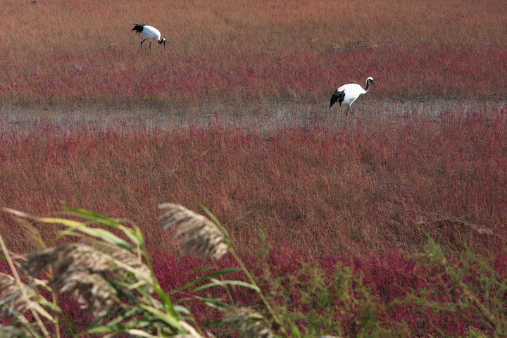 在位于盤錦的遼河三角洲濕地,特殊環境孕育出的堿蓬草鋪滿灘涂,一到秋天這里就成了“紅色海岸線”。新華社記者王乙杰攝