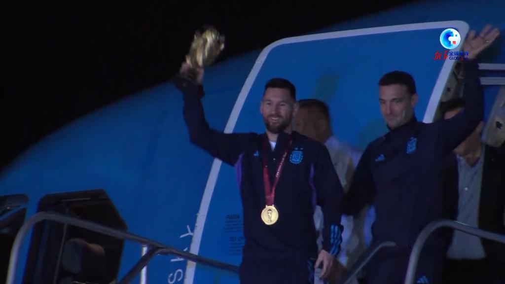 當地時間20日凌晨2時許,卡塔爾世界杯冠軍阿根廷隊乘坐專機抵達阿首都布宜諾斯艾利斯埃塞薩國際機場。