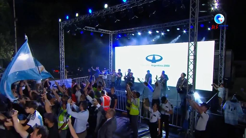 這是阿根廷隊第三次奪得世界杯冠軍,機場以過水門禮迎接阿根廷隊回家。現場樂隊歡慶,眾多球迷匯集到這里迎接。