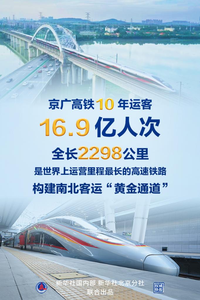10年來,京廣高鐵累計運(yùn)送旅客16.9億人次,成為我國最繁忙的客運(yùn)線路之一。京廣高鐵開通后,北京西站步入高鐵時代,每日圖定始發(fā)京廣高鐵列車從60對增加到107.5對。武漢站單日發(fā)送旅客由幾千人次增長到最高逾14萬人次。京廣高鐵廣鐵管內(nèi)共開行60多萬趟動車組,最短發(fā)車間隔僅5分鐘。