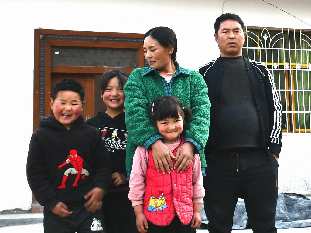 巴木玉布木(右二)、丈夫巫其石且(右一)和孩子們在一起,大女兒不巧沒在家。新華社記者 謝佼 攝
