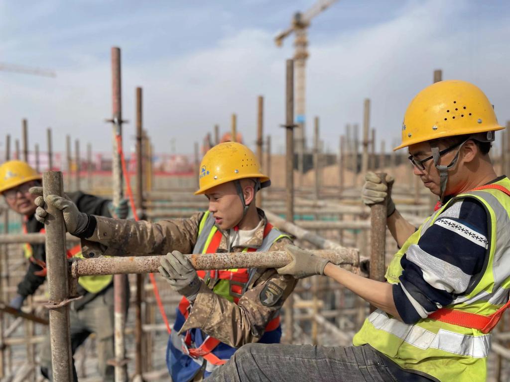 喀什大學東城校區(qū)項目現(xiàn)場,中建三局施工人員正在進行主體結構施工。新華社發(fā)(馮躍龍 攝)