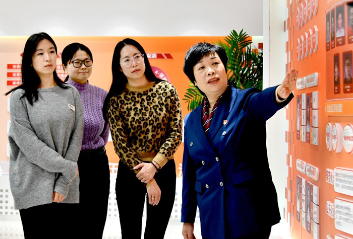 張軍萍和同事們一起商量社區工作。新華社記者黃安琪攝