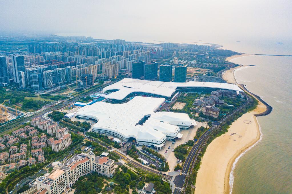 4月7日拍攝的第三屆中國國際消費(fèi)品博覽會舉辦地——海南國際會展中心(無人機(jī)照片)。新華社記者蒲曉旭攝