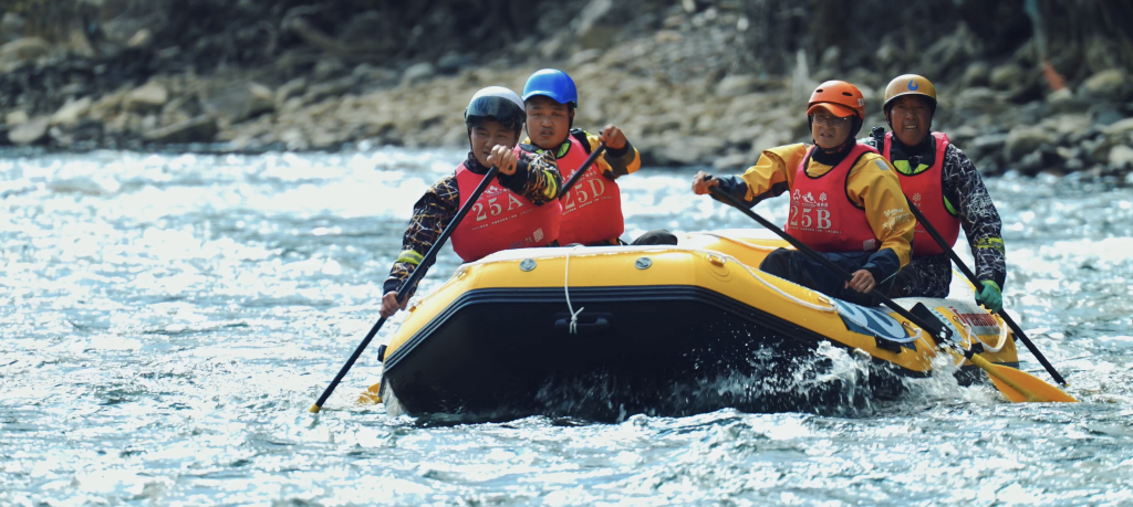 船槳與水的激烈碰撞,成就了扎史品初對水的駕馭;橡皮艇與浮力的抗擊中,扎史品初挑戰自然,又融入自然。