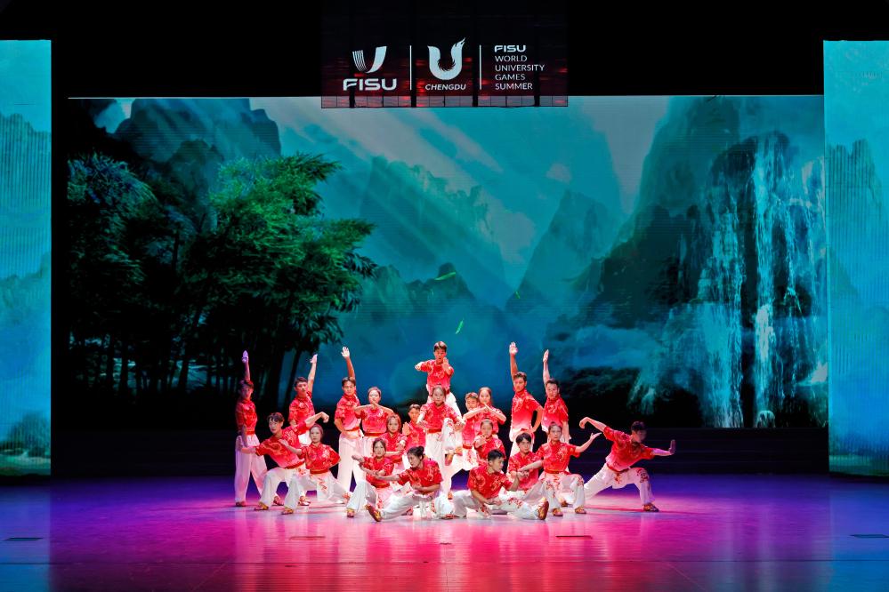 新華社成都8月6日電 6日晚,由國家體育總局主辦的“中華體育精神頌”成都大運站中國功夫專場展演暨優秀運動員交流活動在大運村藝術中心舉行。