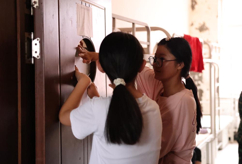 8月4日,被轉移的村民在吉林省舒蘭市第26中學臨時安置點內收拾房間。新華社記者 顏麟蘊 攝