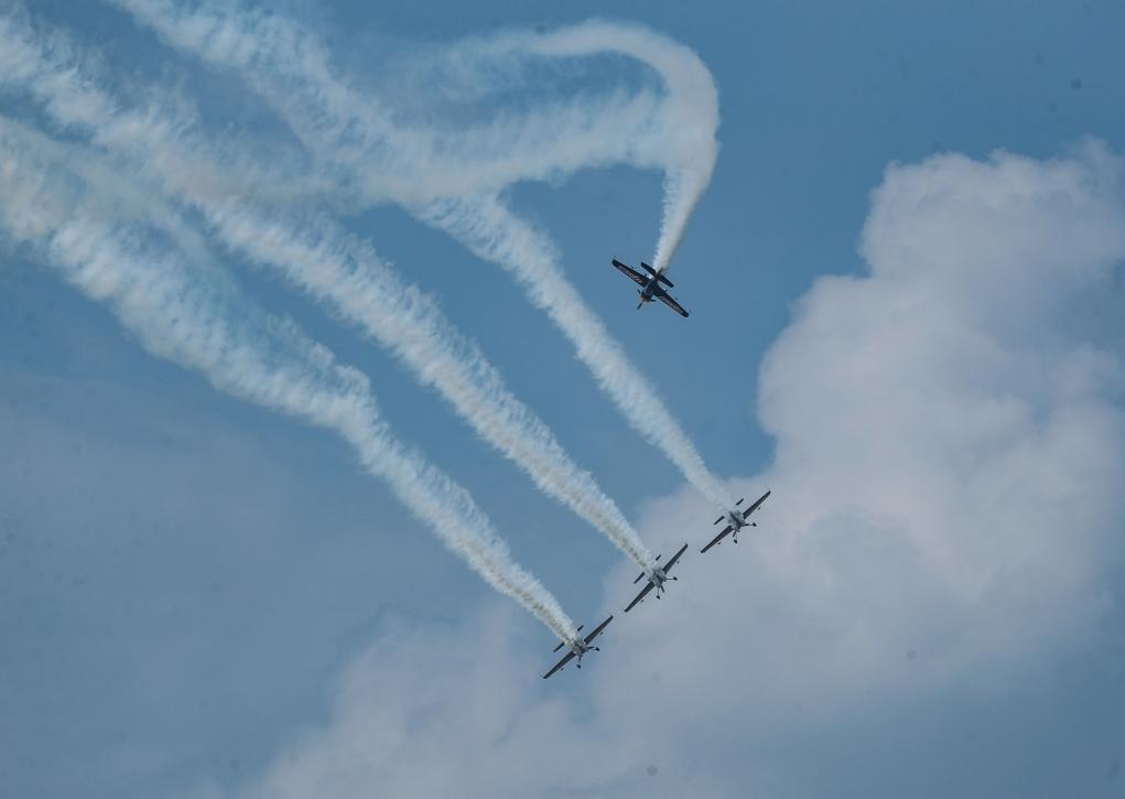 8月18日,飛行編隊在飛行大會上進行特技飛行表演。新華社記者 龍雷 攝