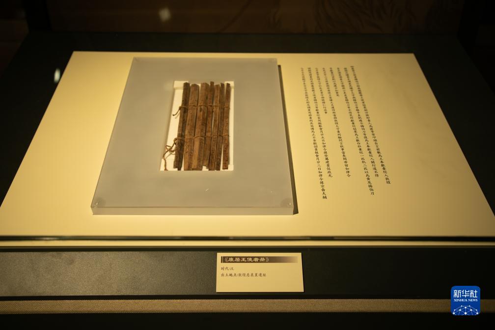 這是9月7日拍攝的甘肅簡牘博物館展出的由7枚簡牘組成的“康居王使者冊”。新華社記者 郎兵兵 攝