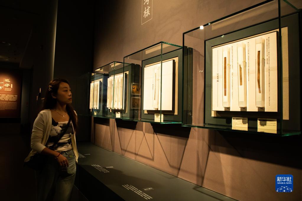 這是9月7日拍攝的甘肅簡牘博物館展廳內的部分簡牘文物。新華社記者 郎兵兵 攝