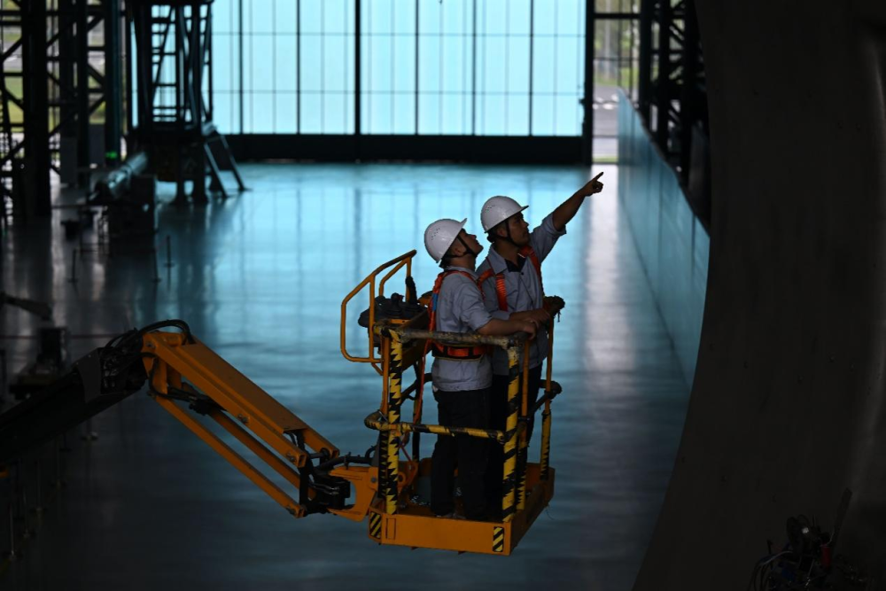 9月15日,工作人員在“夸父”園區安裝調試設備。新華社記者周牧 攝