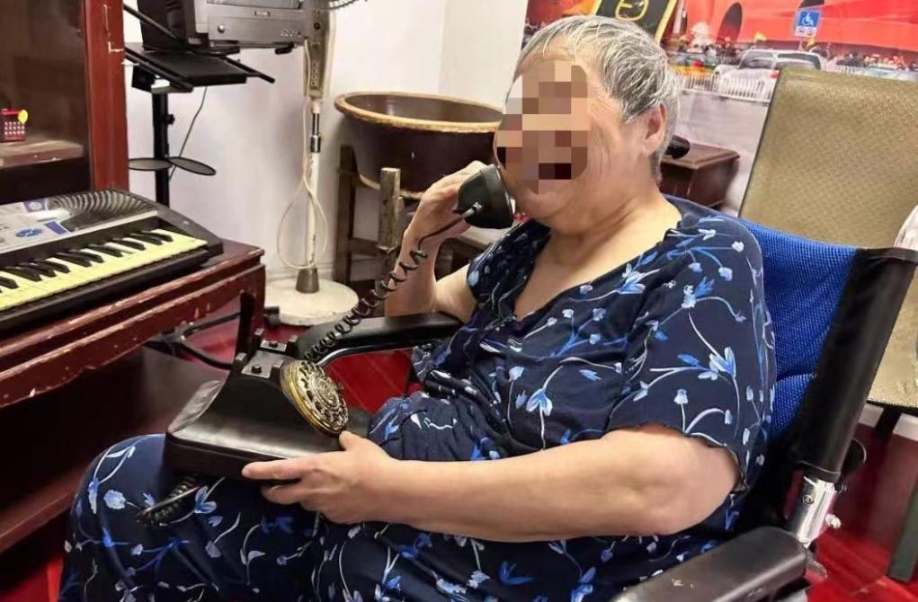 2023年8月5日,認知癥老人在“忘不了懷舊角”給家人“打電話”。