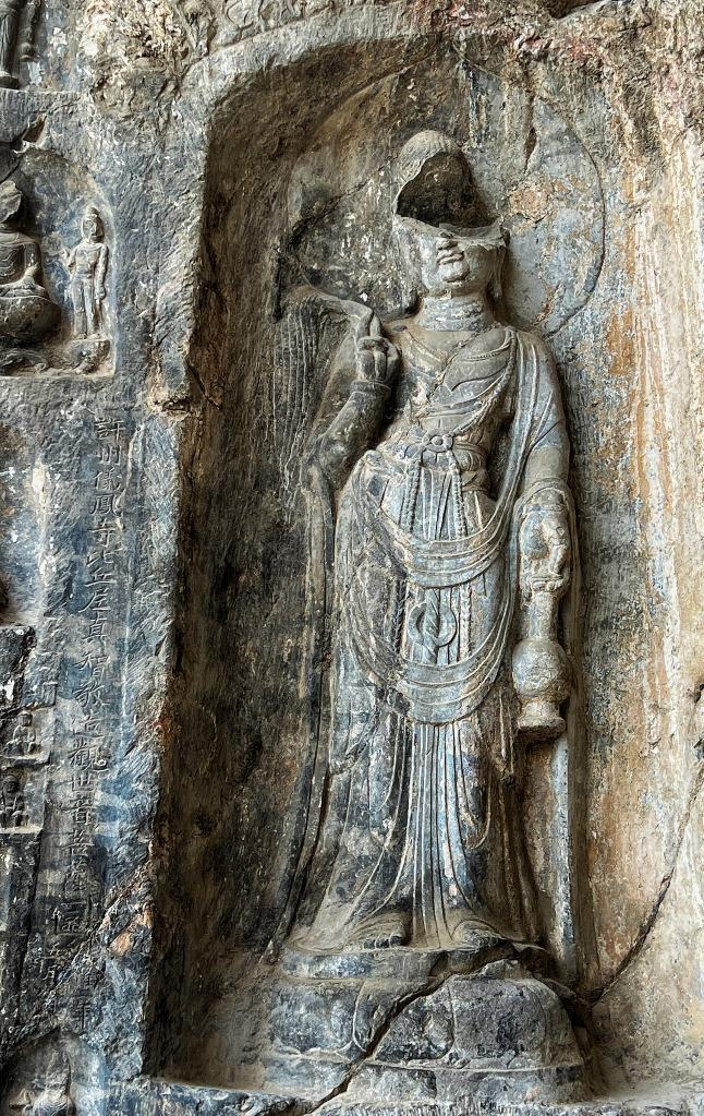 龍門石窟萬佛洞前庭南壁一圓拱龕內的觀世音菩薩立像。新華社記者 唐健輝 攝