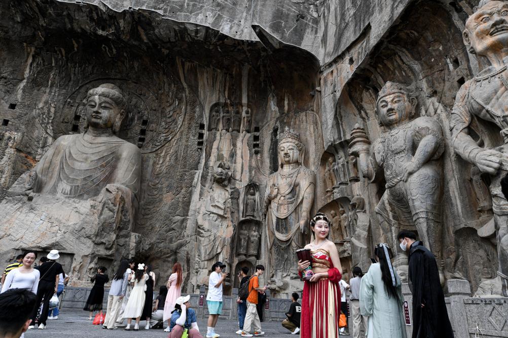 游客在龍門石窟參觀游覽。新華社記者 吳剛 攝