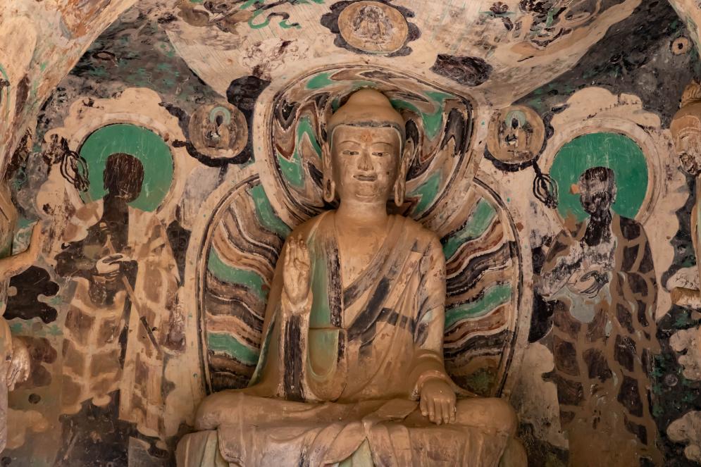 波紋發(fā)髻、高鼻深目……凝望第169窟中的佛像、壁畫,來自古印度的犍陀羅藝術(shù)、秣菟羅藝術(shù)風(fēng)格濃郁。楊彩霞說,1600多年前,西秦工匠用高超的手藝,刻畫出佛教沿著絲路東傳進(jìn)入內(nèi)地時的最初樣貌。