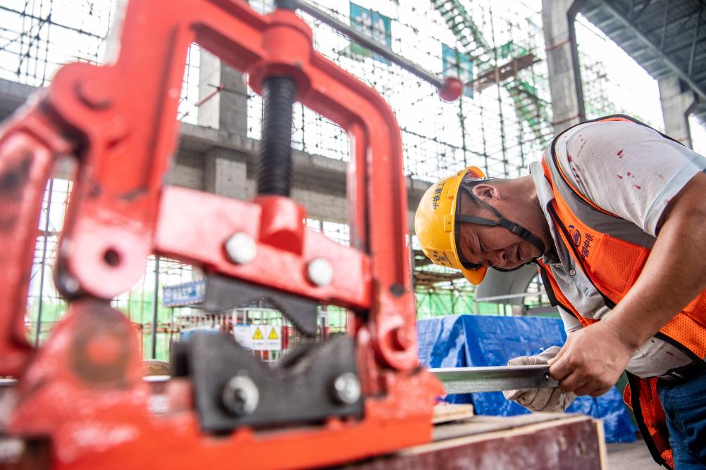 渝昆高鐵川渝段站房項目現(xiàn)場,工人正在施工。新華社記者唐奕 攝