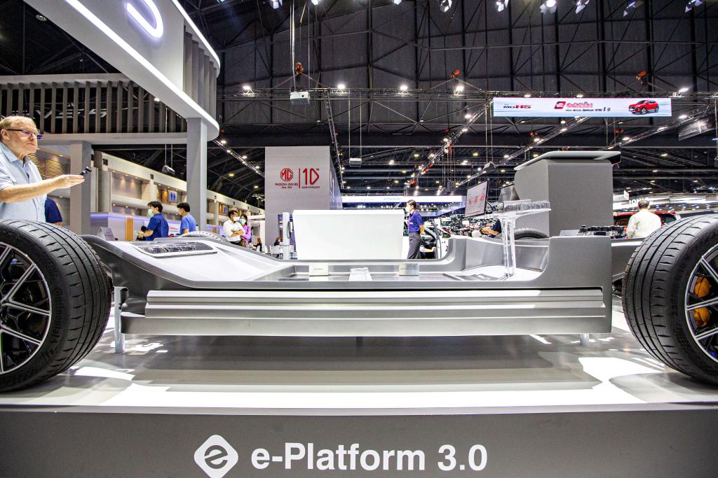 2023年12月6日,觀眾在曼谷舉行的泰國國際車展上參觀比亞迪e平臺3.0。新華社記者王騰攝