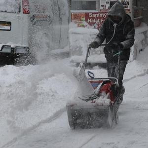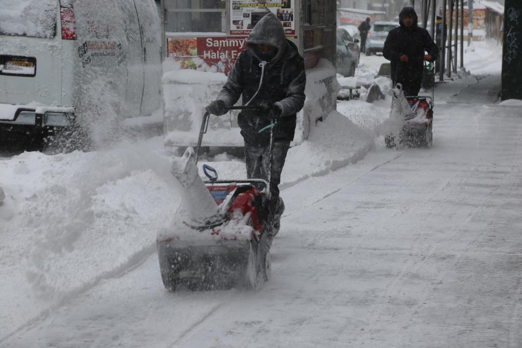 2022年1月29日,居民在美國紐約清掃路上積雪。冬季風暴給紐約市及周邊地區帶來大雪和強風。新華社記者劉亞南攝