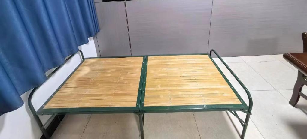 甘肅省臨夏回族自治州積石山縣大河家鎮,是此次積石山6.2級地震受災最嚴重的地區之一。記者21日在大河家鎮派出所看到這樣一張行軍床——一塵不染的木床板,嶄新的綠色鐵支架,床上既沒有床單也沒有被褥。