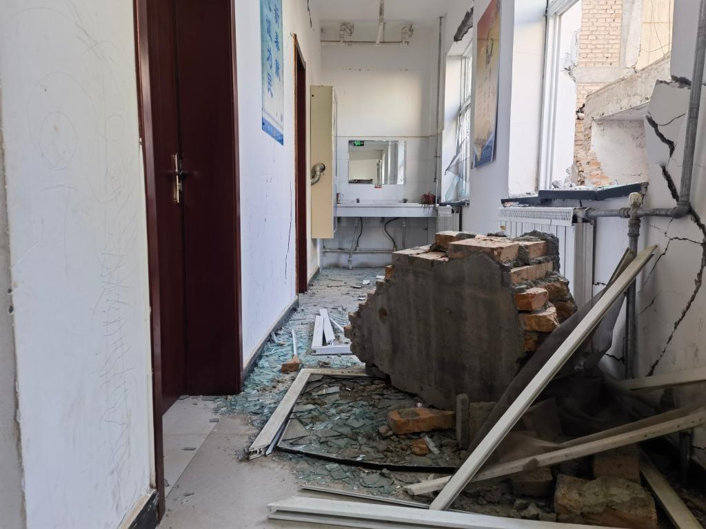 12月21日,大河家鎮派出所內受損嚴重的辦公樓。新華社記者 胡偉杰 攝