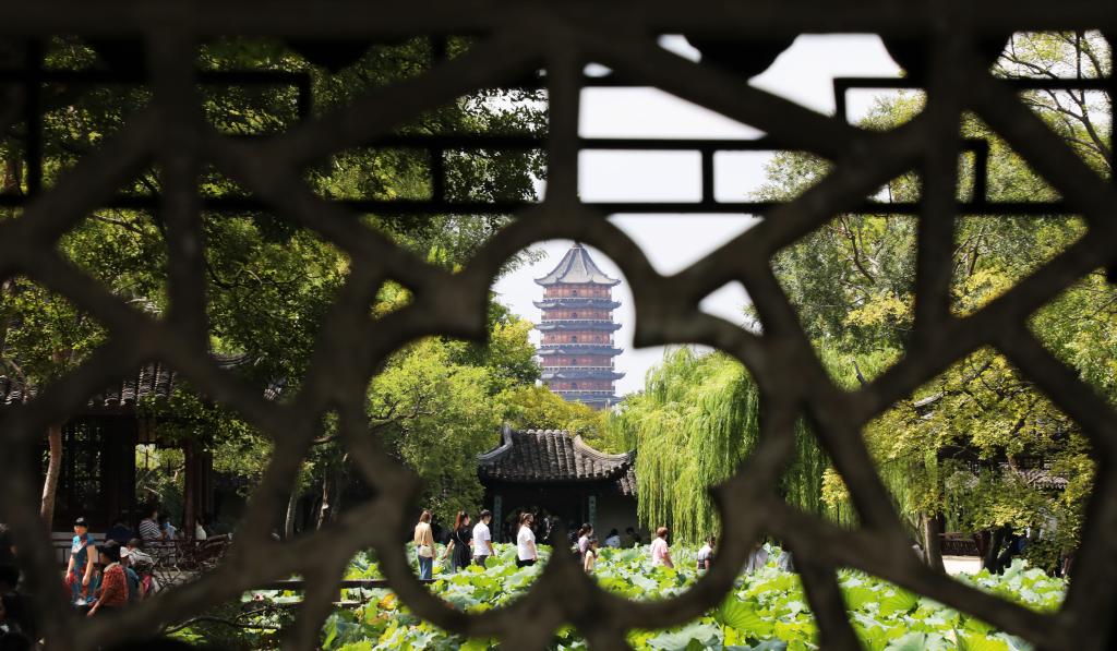 拙政园的漏窗后