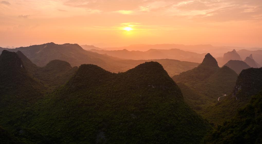 这是2024年9月12日从广西桂林阳朔如意峰索道景区拍摄的喀斯特地貌风光。新华社记者 郑焕松 摄要拍龙脊梯田