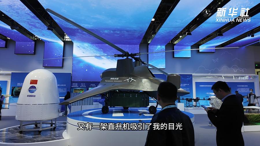 告别了机器人,又有一架直升机吸引了我的目光,因为它超大的体型在场馆里格外醒目,它叫做“重型交叉双旋翼无人直升机”,那么,它究竟能做些什么呢?
