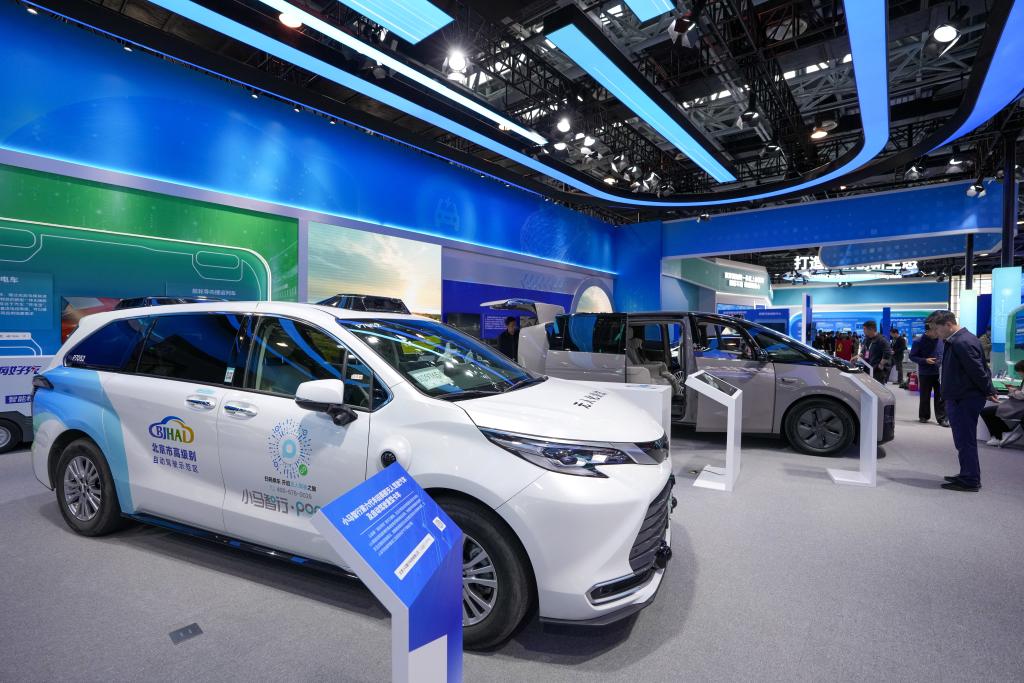 在中关村展示中心常设展上,参观者参观展出的智能网联汽车。新华社记者 鞠焕宗 摄