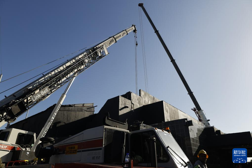 4月8日,救援人员在多米尼加首都圣多明各的夜总会屋顶坍塌事故现场工作。新华社发