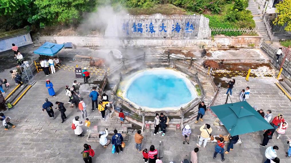 游客在腾冲热海景区体验温泉。(腾冲市融媒体中心供图)