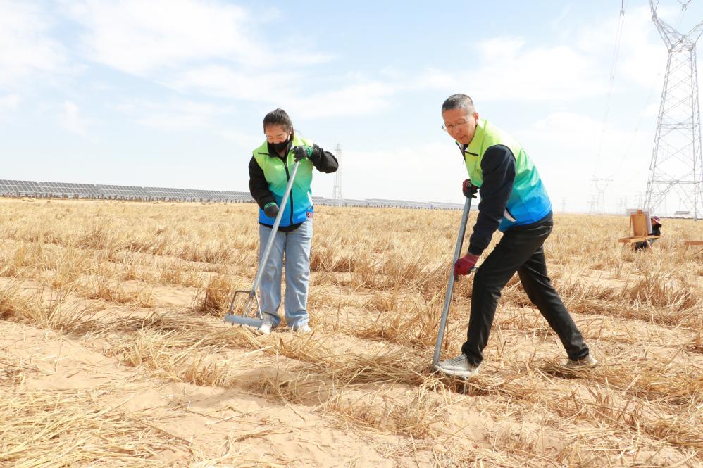 “今年3月中旬开始,我们就在乌兰布和沙漠里压草方格,固定流沙;3月下旬开始植树造林,预计持续到5月底。”磴口县三北治沙青年突击队队员、磴口县防沙治沙局副局长何文强说,今年突击队计划带领和指导周边群众,完成工程压沙和灌木造林9.3万亩,目前已经完成80%。
