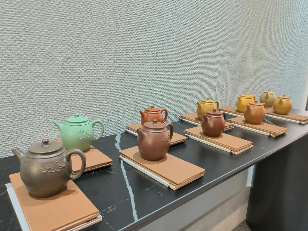 这是江苏宜兴一家工作室展示的部分茶壶作品(5月22日摄)。新华社记者 何磊静 摄
