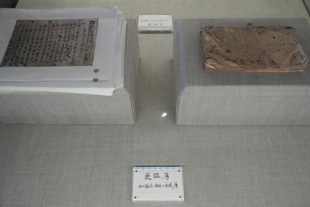 现藏于琼海市更路簿博物馆的王振忠家族祖传更路簿原件和复印件。新华社记者 夏天 摄