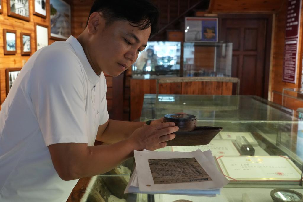 馆长兼讲解员,还是琼海市级更路簿传承人,王振忠出生在一个船长之家,其祖父和父亲的航迹曾遍布南海。他在馆内珍藏着家族传承的更路簿、罗盘、老地图、海捞瓷等老物件。其中,几盏煤油灯来自遥远的南洋。