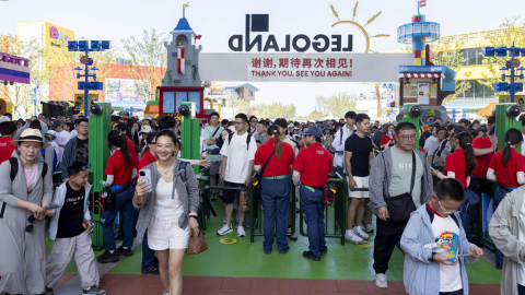 7月5日,游客从上海乐高乐园门口入园。新华社记者 王翔 摄