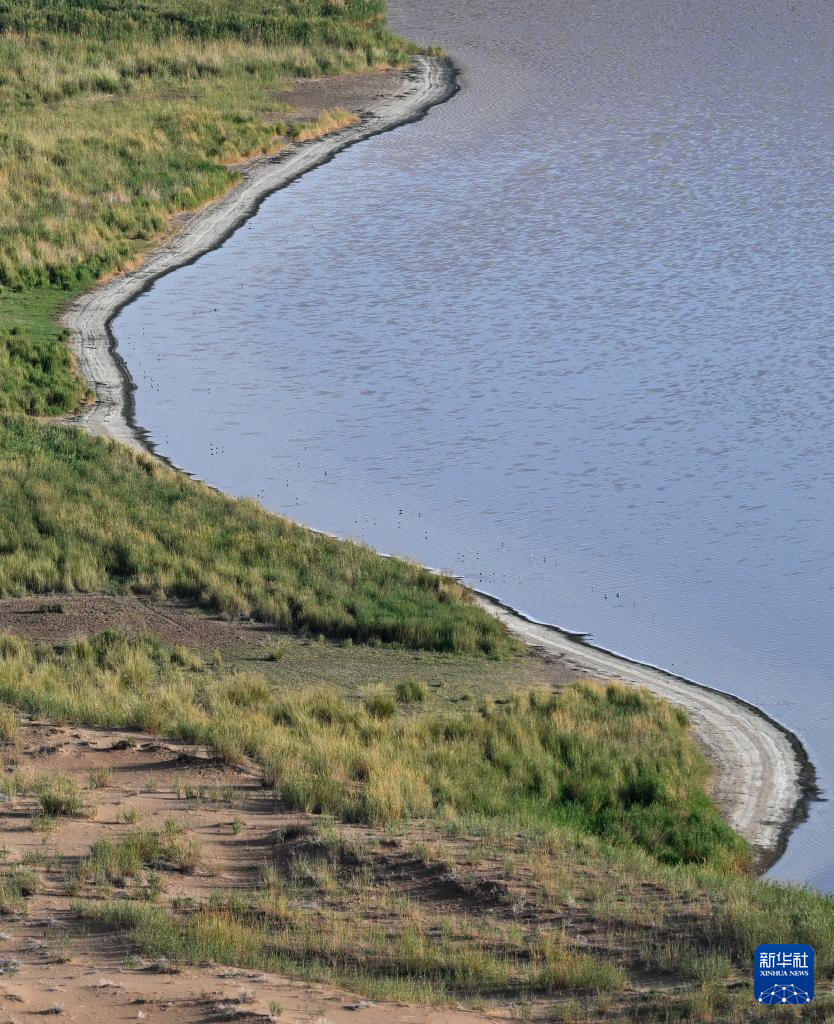 2024年10月14日在内蒙古阿拉善盟额济纳旗拍摄的居延海景区(无人机照片)。新华社记者 贝赫 摄