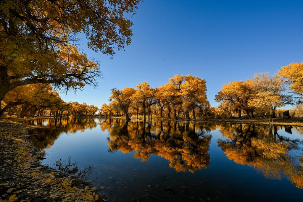 如果说沙漠是阿拉善的肌理,那么,额济纳旗的45万亩天然胡杨林便是灵魂。这片胡杨林是世界仅存的三大胡杨林之一,深秋时节化作一片金色海洋,其顽强的生命力令人震撼。