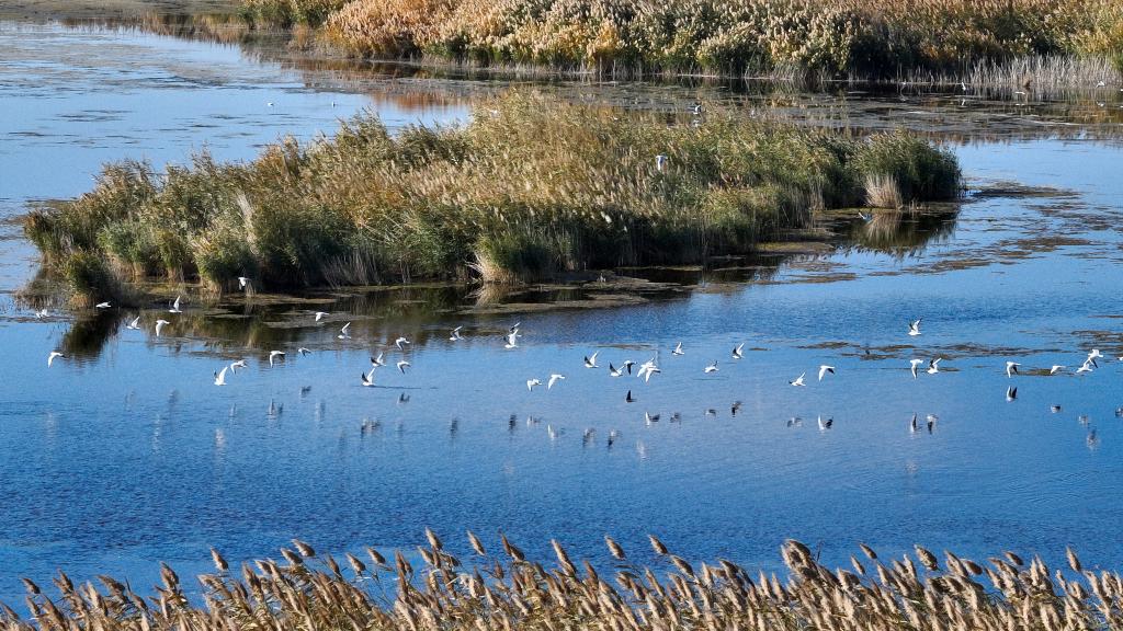 驱车穿行其中,144个形状各异的湖泊在阳光下幻化出多彩的颜色。