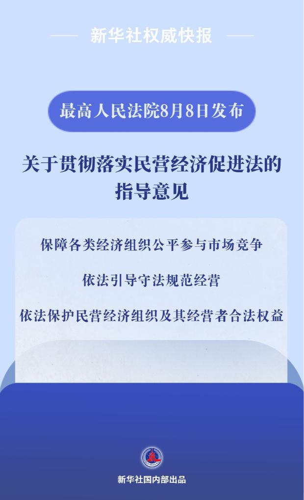 新华社北京8月8日电 题:法治护航!最高法发布意见推动民营经济健康发展
