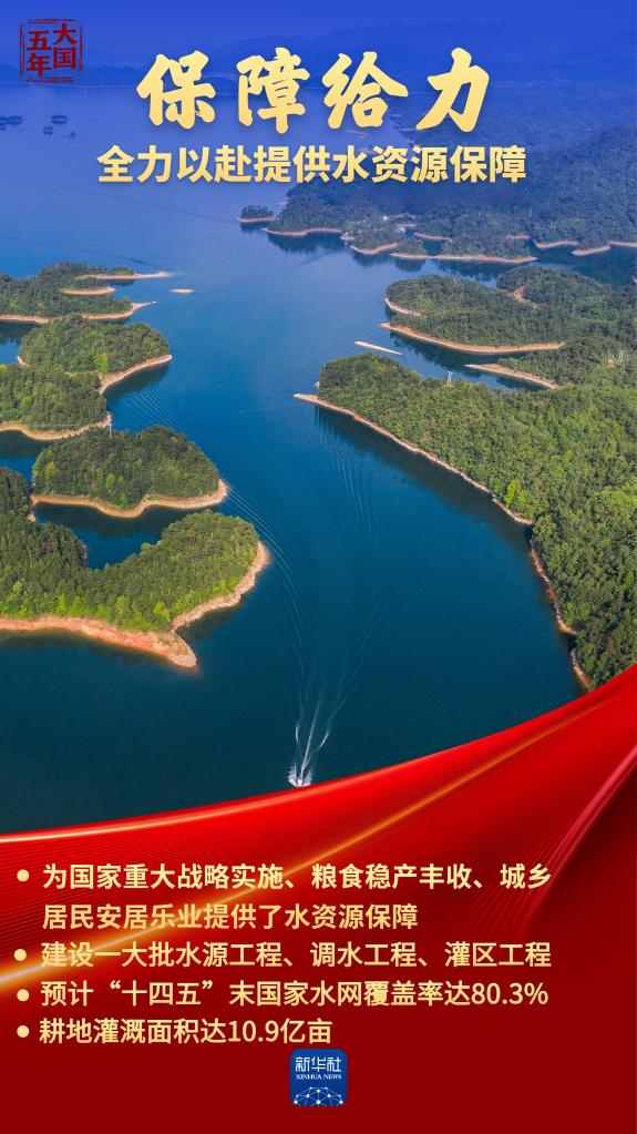 水运连着国运,江河滋养文明。“十四五”期间,我国接续奋战,建成了世界上规模最大、功能最全、惠及人口最多的水利基础设施体系:洪涝灾害损失占国内生产总值的比例下降至0.18%;断流多年的一批河流泉眼复流复涌;以用水总量的零增长,支撑了经济总量连跨大台阶、粮食产量连年丰收的治水用水兴水奇迹……